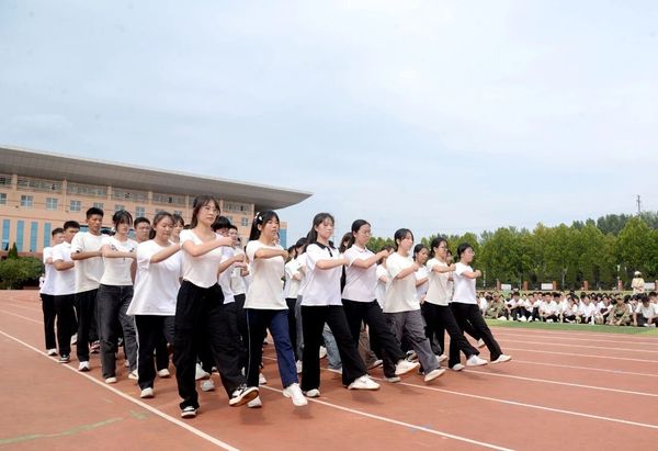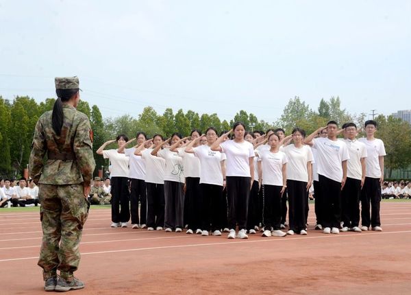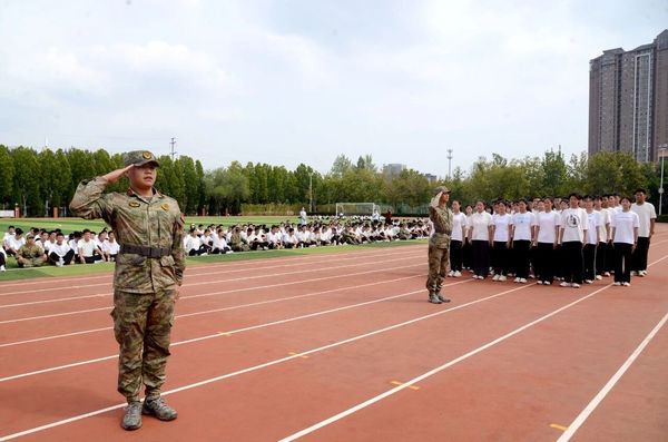 “稍息!立正!敬礼!”同学们目光坚毅、步伐铿锵,整齐划一的动作、响彻云霄的口号,一举一动都凝聚着汗水与坚持,完美展现了军事训练成果,整个操场处处洋溢着蓬勃的朝气和昂扬的斗志。