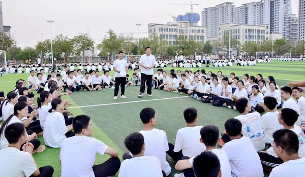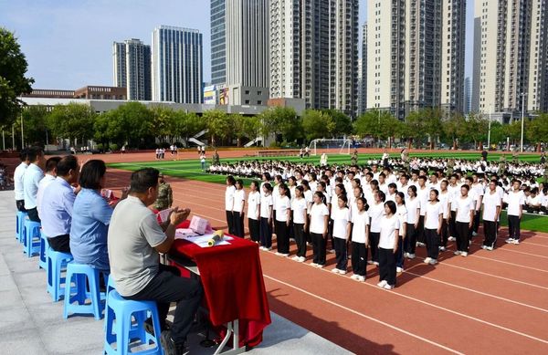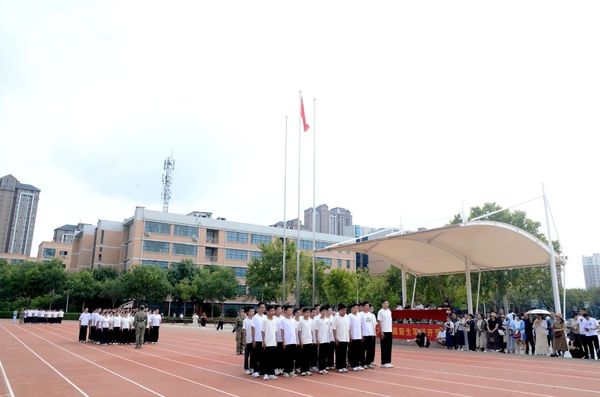 8月26日下午,2025级高一新生圆满完成各项军事训练任务,分校区举行军训会操表演。同学们以挺拔的军姿、整齐的步伐和昂扬的士气,接受承训官兵、学校领导和家长的检阅。
