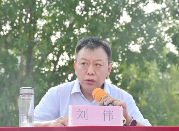 校党委书记王伟,校长刘伟宣布军训会操开始。