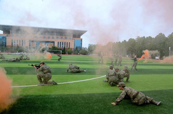 伴随着庄严的升国旗、奏国歌仪式,军训会操正式拉开帷幕。