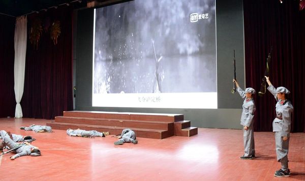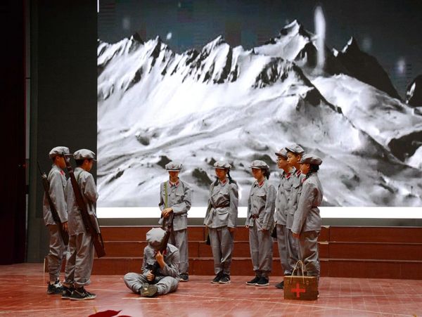 穿越时光隧道,重温百年党史。在艺华厅,南校区初中部道德与法治研习社的同学们自编自导自演,将红色党史搬上舞台,通过对话表演、情景再现等形式,将湘江战役、遵义会议、四渡赤水、飞夺泸定桥、爬雪山过草地等革命历史,立体、鲜活、感人地呈现在师生面前,生动地刻画了革命领袖的群体形象,展现了革命先驱们坚持真理、坚守理想,不怕牺牲、英勇斗争,对党忠诚、不负人民的伟大精神,诠释了中国共产党为什么能、马克思主义为什么行,引导青年学子传承红色基因,赓续精神血脉,坚定中国特色社会主义道路自信、理论自信、制度自信、文化自信,坚定不移听党话、跟党走,增强做中国人的志气、骨气、底气,不负时代,不负韶华,不负党和人民的殷切期望。