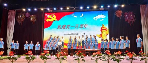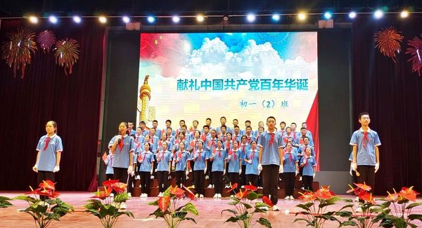 在南校区,初一年级的同学们引吭高歌,举办“学党史、感党恩、跟党走”主题歌咏比赛,唱响《我和我的祖国》《没有共产党就没有新中国》《东方红》《唱支山歌给党听》《灯火里的中国》等红色经典歌曲,礼赞建党百年,讴歌伟大时代,向党的百岁生日献上美好祝福。