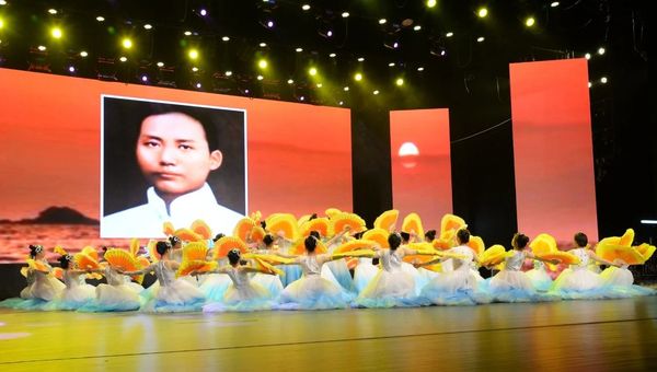 师生们表演的大型歌舞《东方红》,气势磅礴、恢宏壮美,以高超的舞台艺术演绎了人民群众在党的领导下,从苦难走向胜利的艰苦历程,生动诠释了党的领导人为人民谋幸福的追求和中国共产党人的初心使命,表达了一中师生对党的热爱和祝福,向中国共产党成立一百周年献礼。