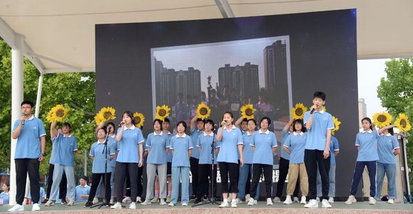 在热烈的掌声中,师生们先后献唱《挥洒青春的日子》《祝你一路顺风》,用歌声深情道别,互送祝福。