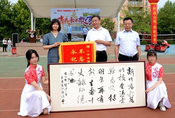 校党委书记、校长王伟向初三学子致以成长的祝贺,和同学们一同回顾了一中八十一年的辉煌历史,重温了“求知、求真、求健、求美”的校训,寄语同学们传承一中红色基因,赓续精神血脉,坚守一中“坚毅果敢、担当务实,兼容并蓄、齐心向前”山品水德文化品质,肩负历史使命,立大志、明大德、成大才、担大任,砥砺奋进,与时代同行,努力成为德智体美劳全面发展的社会主义建设者和接班人,为实现中华民族伟大复兴的中国梦努力奋斗。