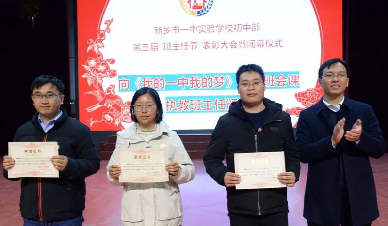 学校领导向在班主任节中获奖的班主任教师颁奖,向老师们致敬并提出殷切期望。