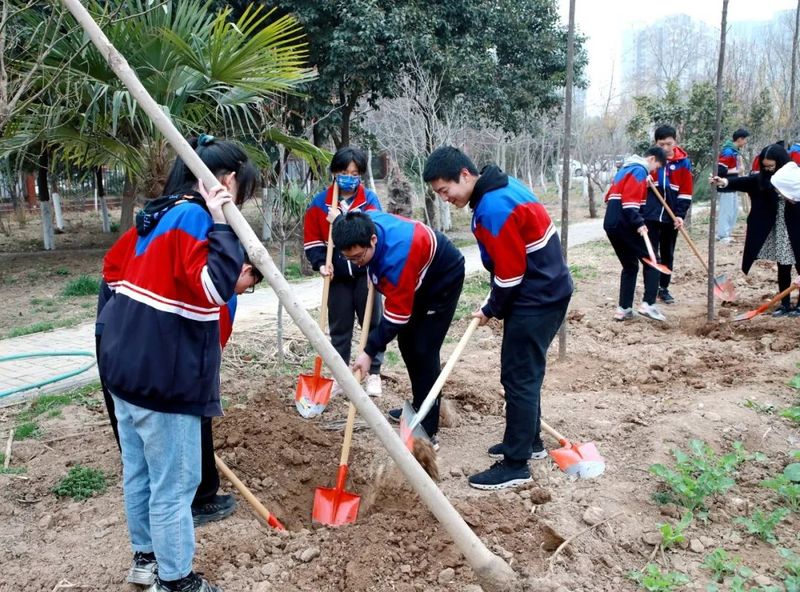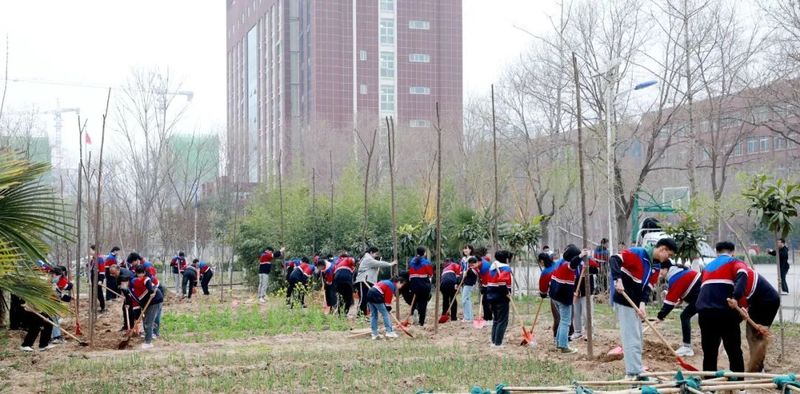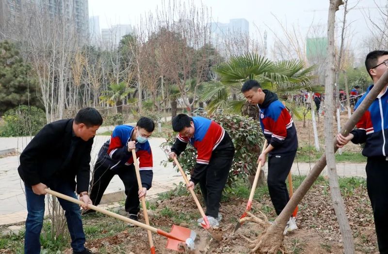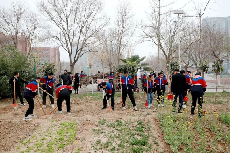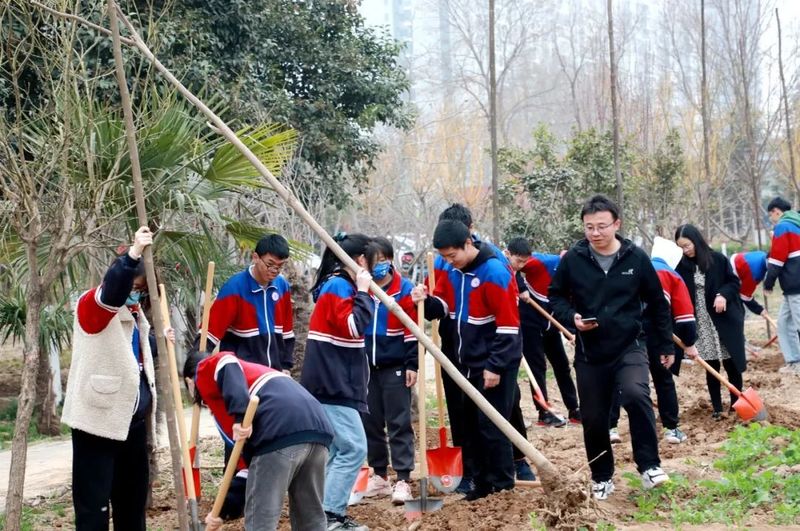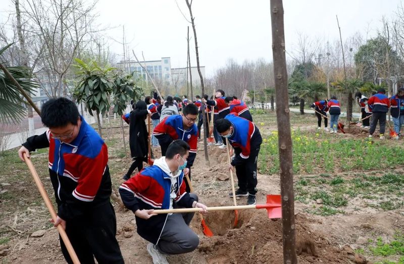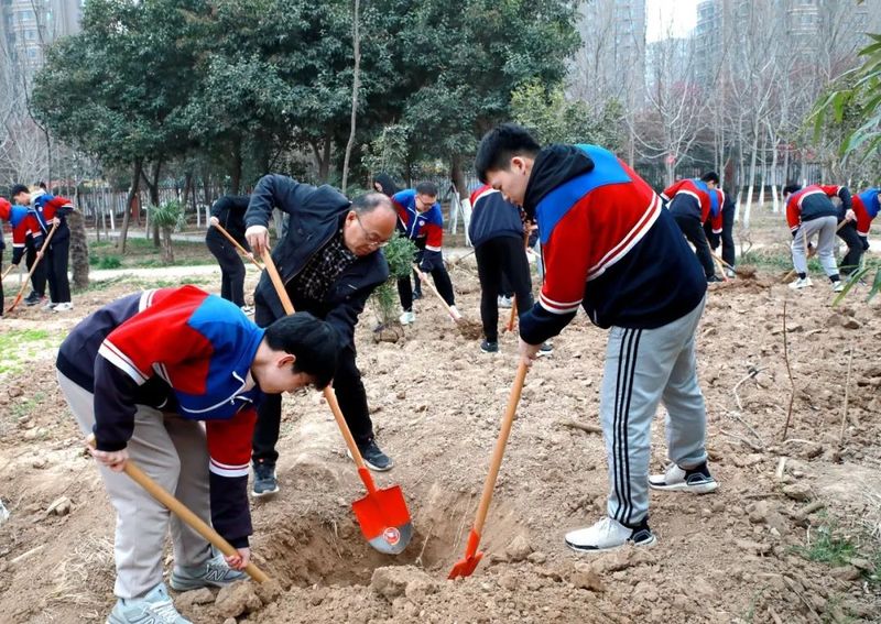3月12日,正值植树节。在东校区,高三师生们积极行动起来,在课余间隙加入到植树活动中,用双手绘就希望的画卷,为春日的一中校园再添一分新绿。