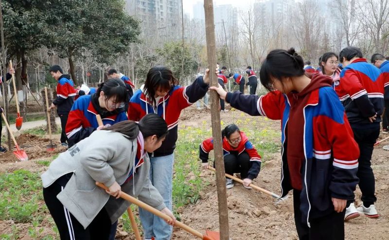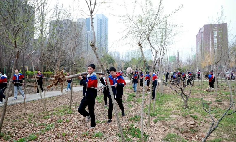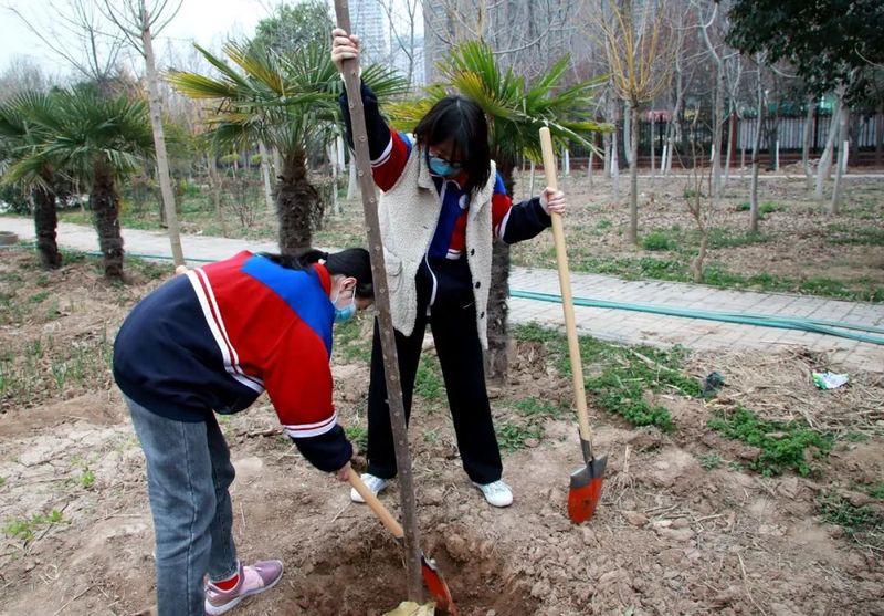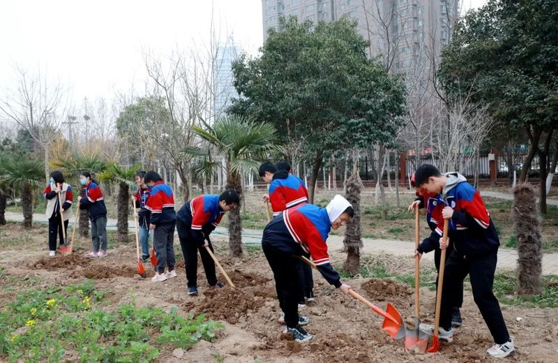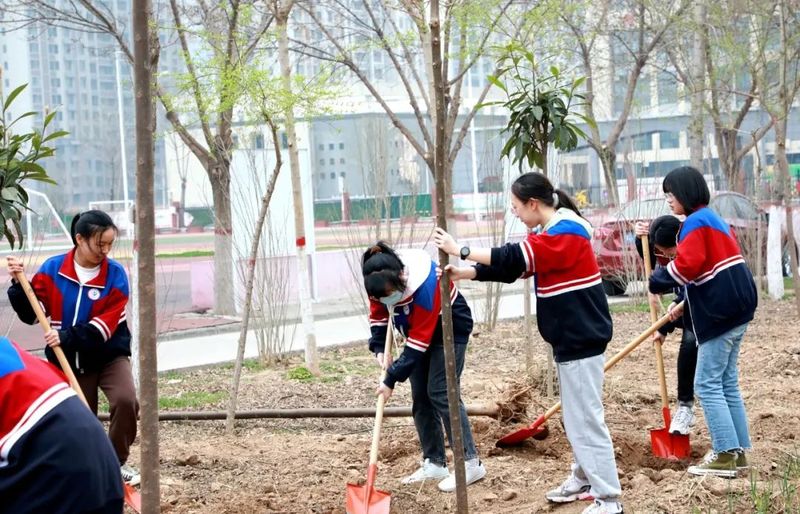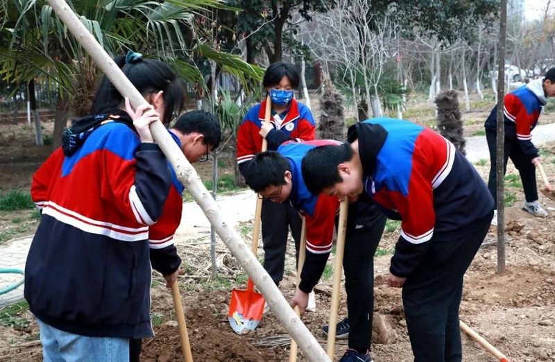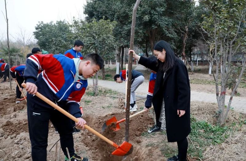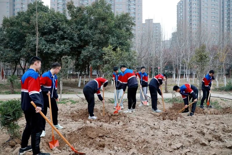 3月12日,正值植树节。在东校区,高三师生们积极行动起来,在课余间隙加入到植树活动中,用双手绘就希望的画卷,为春日的一中校园再添一分新绿。