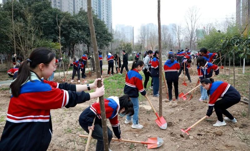 在第44个植树节到来之际,我校提前布局、提早谋划,在校园里先后种下数百棵香樟、樱花、玉兰、乌臼、水杉、杜仲、石楠、国槐、垂柳、迎客松等景观树,绿化草坪2000多平方米,爱绿养绿、植绿护绿,扮美魅力一中,厚植河南省绿色校园底色和内涵。