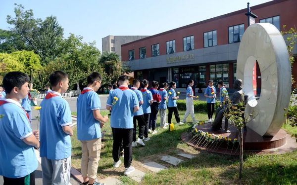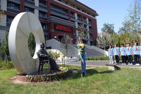在行政办公楼,校党委书记、校长王伟组织学校班子成员召开追思座谈会,深切缅怀杨蕴玉书记,追忆老书记在一中工作的点滴岁月,感怀老书记为一中发展做出的巨大贡献,点燃熊熊不息的信仰之火,激发红色一中精神力量,共同书写为党育人、为国育才时代答卷。 王伟表示,薪火相传,精神永恒。让我们在习近平新时代中国特色社会主义思想指引下,以老书记杨蕴玉同志为标杆楷模,大力传承弘扬一中精神,不忘初心,牢记使命,接续奋斗,砥砺前行,建设全国一流名校,办好人民满意的教育,培育德智体美劳全面发展的社会主义建设者和接班人,不断以崭新的业绩缅怀慰藉杨蕴玉老书记。 校领导李亚先、闫宏、刘伟、罗新民、李仲、李克普、侯兆兵、杜海军等参加了座谈会。 铭记历史,是为了更好地勇毅前行;对杨蕴玉书记最好的致敬,就是让红色精神薪火相传。在开学后的第一次校会、班会课上,师生们怀着沉重的心情,追忆杨蕴玉书记革命的一生、奉献的一生,观看杨蕴玉书记口述一中历史视频,学习老书记的优秀品格和高尚情怀,牢记老书记的教导、嘱托,传承红色基因,赓续精神血脉,凝聚强国有我奋进力量。 八十二载峥嵘岁月,新乡市一中始终与党和国家同频共振,一中人接续奋斗,谱写的壮丽篇章,是党史印刻在一中发展史上的鲜明印记。在校史博物馆,同学们聚集在红色一中党建专区,认真聆听一中历史,学习杨蕴玉书记等一中先贤、校友的先进事迹,感受一中深厚文化底蕴,深化对“四史”的认真和理解,传承爱党爱国红色基因,牢记初心使命,厚植爱国荣校情怀,强化为实现中华民族伟大复兴的中国梦而努力奋斗的使命担当。 请党放心,强国有我。在老校区蕴玉园,少儿班的同学们肃然起敬,向杨蕴玉书记的雕像三鞠躬,并献上芬芳的菊花,表达对老书记的无限哀思、深切缅怀和崇高敬意。 豫北联合中学(我校前身之一)首任党组织书记。