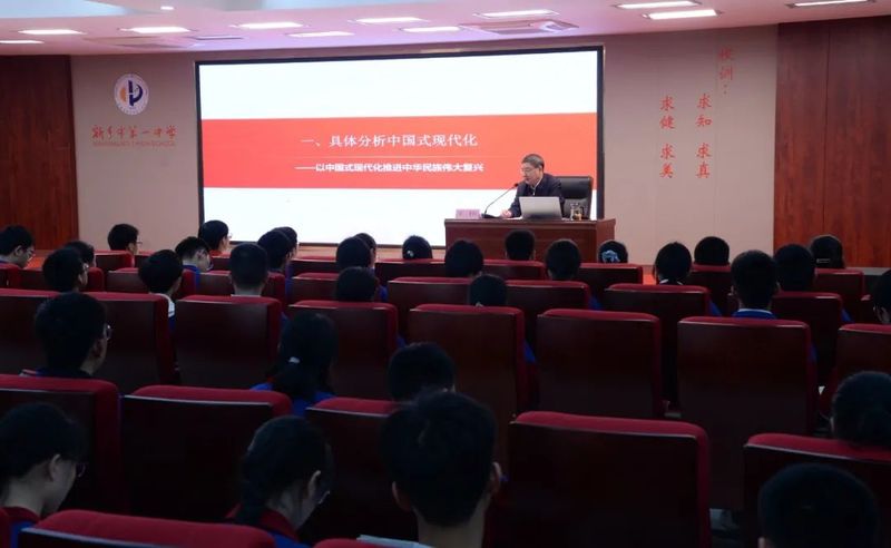 在老校区,校党委书记、校长王伟为同学们作“勇毅前行、助推中国式现代化建设”专题辅导报告,引经据典,用事实说话、用数据发声,以高度的政治站位,深度解读了中国式现代化的五大特征、科学内涵、本质要求、重要意义,以及实现中国式现代化的五个重大原则。