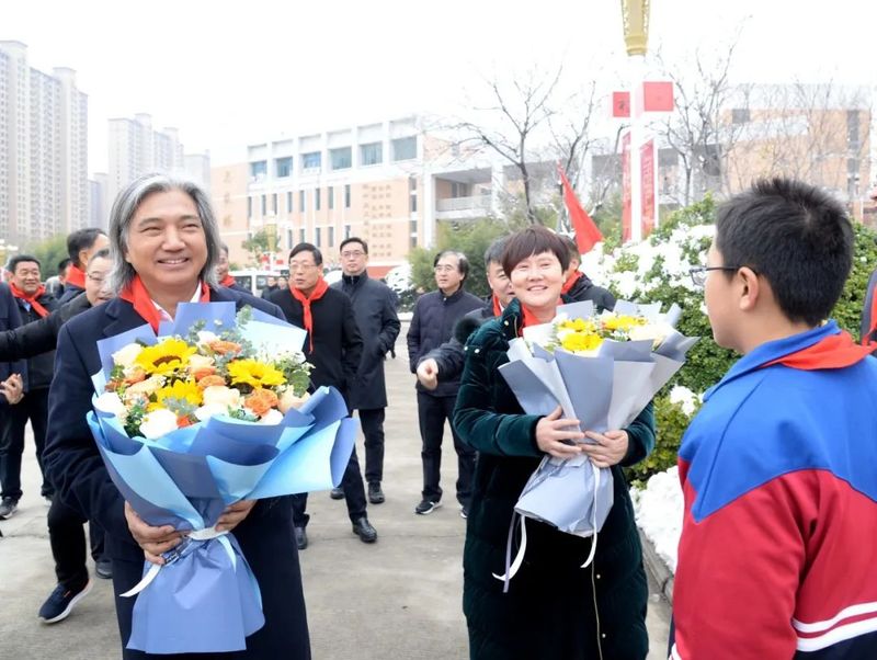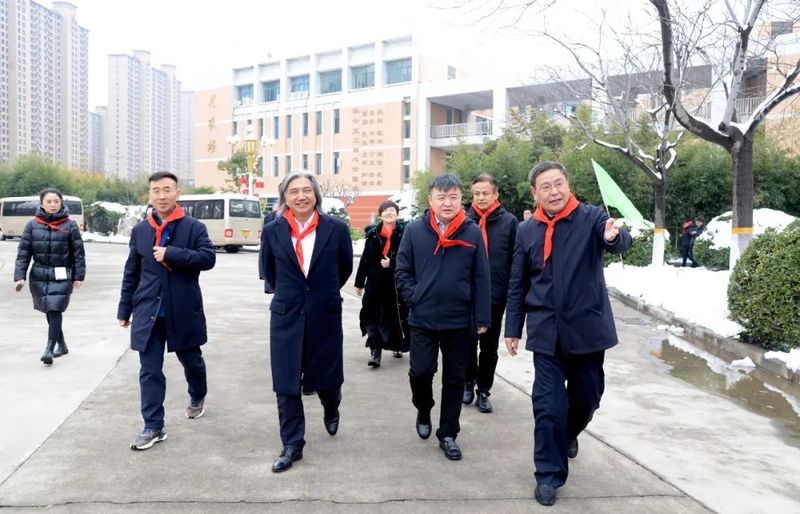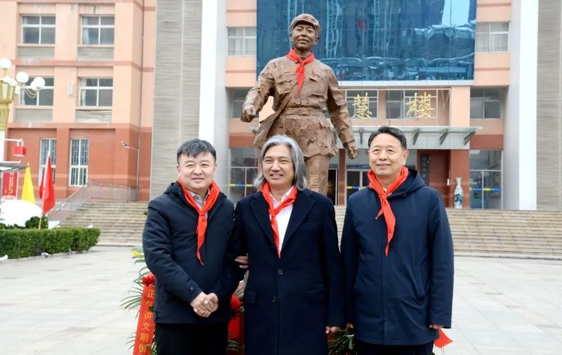 瑞雪喜临牧野,太行福迎远客。12月11日,全国政协副秘书长、民盟中央副主席、中国美术馆馆长、中国城市雕塑家协会主席吴为山一行到新乡市一中南校区(太行中学)参加雷锋雕像落成仪式,并调研德育美育工作。市领导孙栋、朱东亚、李军,国家督学、河南省教育厅原总督学李金川,河南省铭刻雕塑基金会理事长侯屈平,西湖大学创始捐赠人邓营,河南省教育厅基础教育处一级调研员陈锋,市教育局党组书记、局长曹祖臣,市教育局副局长冯建、张世涛等一同调研。