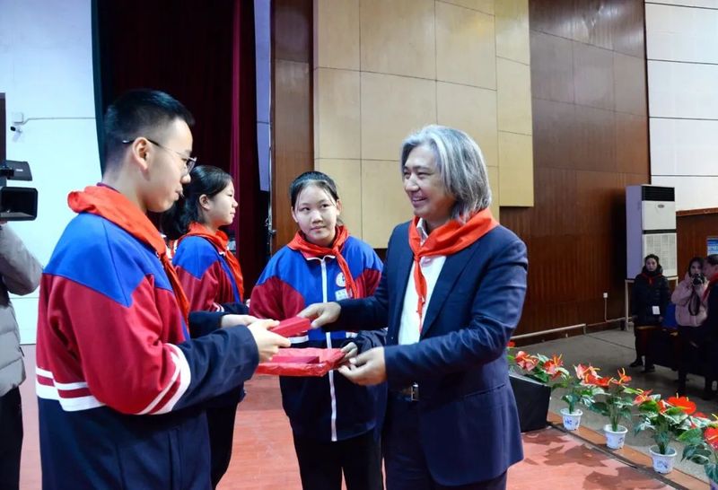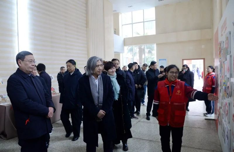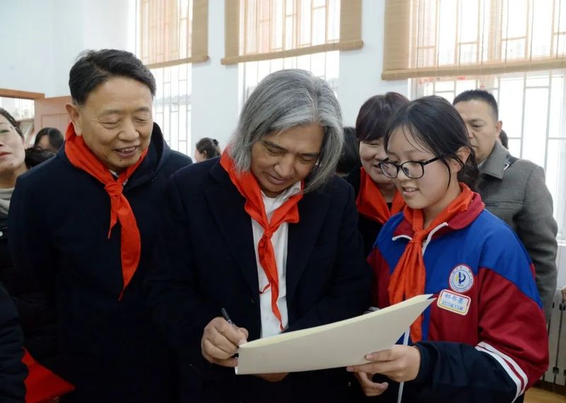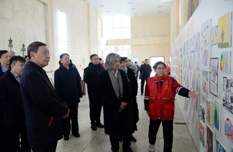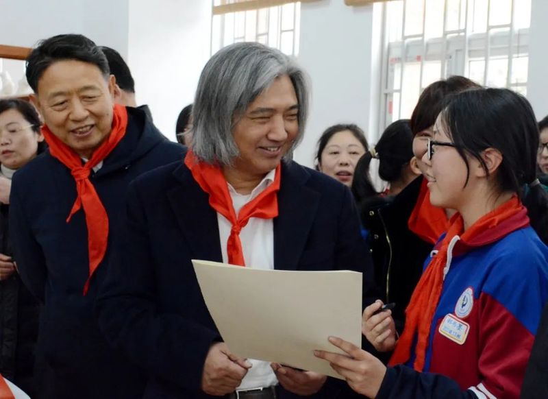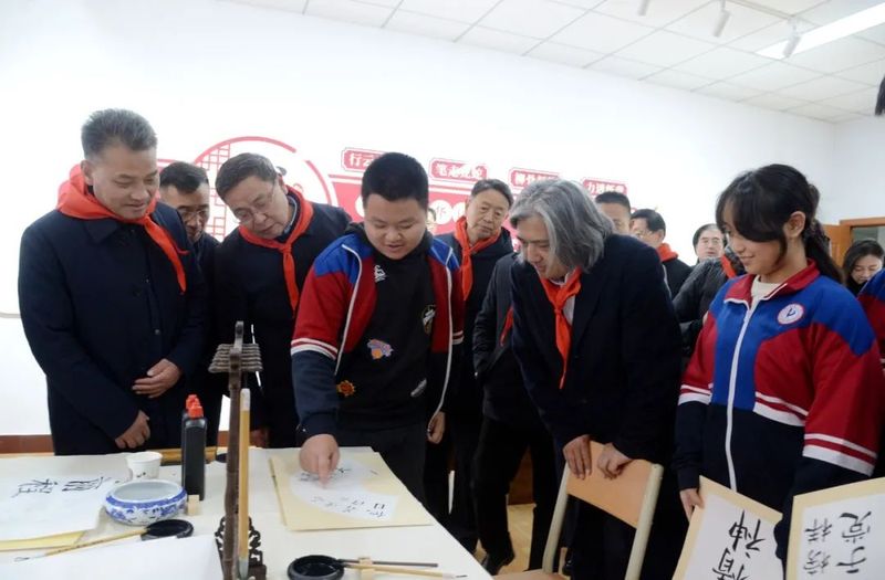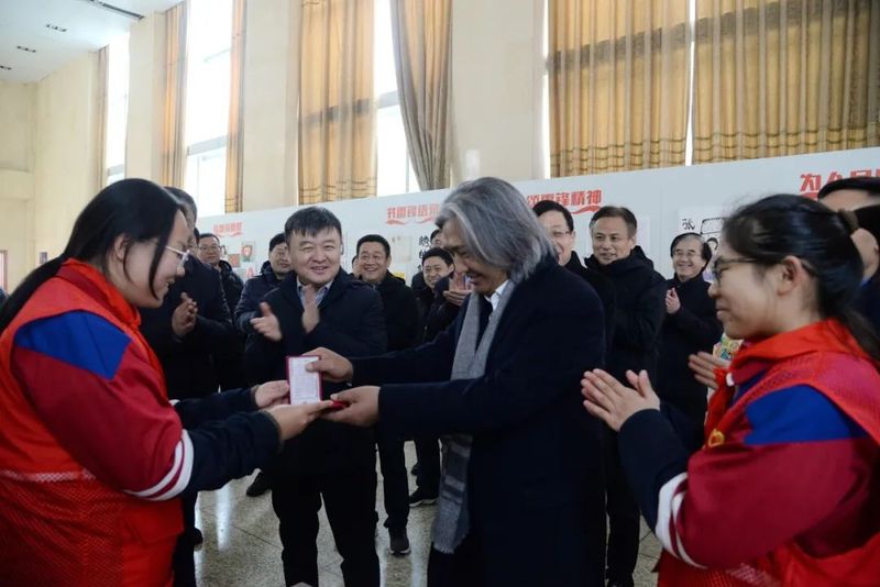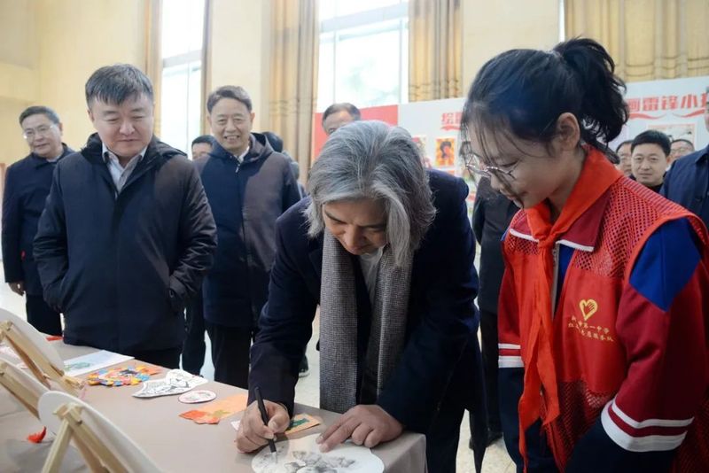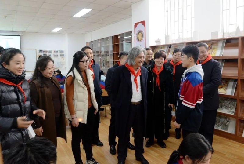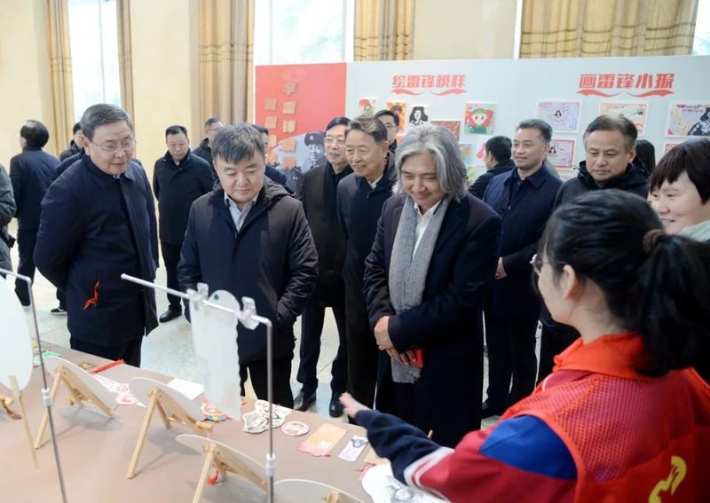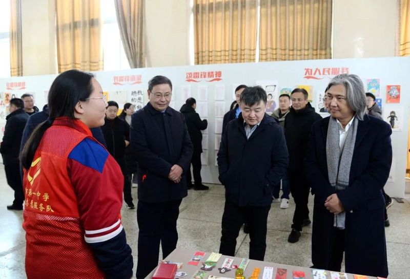 吴为山一行来到新乡市一中南校区,先后参观了雷锋雕像、雷锋文化走廊、“雷锋式好少年”展厅等具有雷锋特色的场馆,观摩指导学校美育课教学,与教师和学生交流,并出席“雷锋式好少年”授章仪式。
