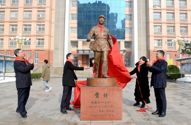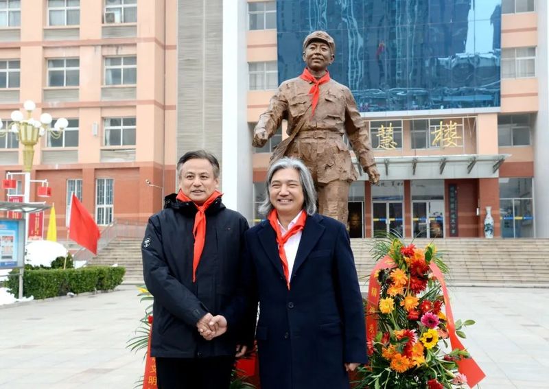 壬寅五月,春意融融,熏风入弦,书声琅琅。太行学子于高树红楼、绿荫曲径之间,助人为乐,尊师礼客,大爱之气和谐氛围盎然。适逢河南省教育厅总督学李金川先生莅校视导,感慨校风优良,尤对学校文明祥和志愿服务之风行倍加褒赞。遂联络素有古道热肠关爱教育美名之河南省铭刻雕塑基金会理事长侯屈平女士,为吾校捐赠雷锋雕像。旨在激励师生敬业奉献,树强国有我之志,笃行不怠,行远自迩。更幸蒙我国雕塑大师吴为山先生亲为操刀,殷殷之谊,铭感五衷。