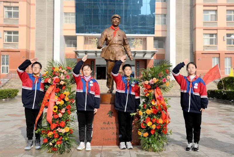 队旗飘扬,鲜花芬芳,歌声嘹亮。伴随着激扬的少先队出旗曲,少先队员昂首挺胸,迈步向前,擎出中国少年先锋队队旗。满怀着诚挚的情感,向雷锋雕像敬献花篮,行队礼,集体呼号,并和出席揭幕仪式的领导嘉宾一起,在鲜艳的队旗下唱响“学习雷锋好榜样”。