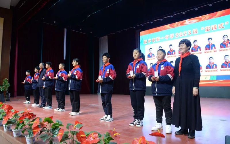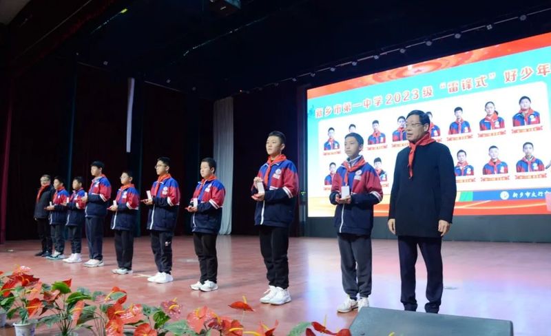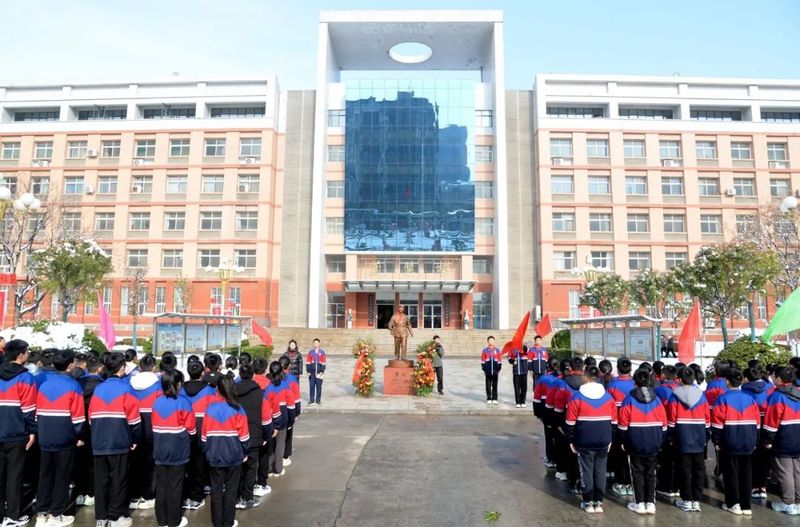 英名因传承而不朽,丰碑在奋斗中永驻。2022年初夏,时任河南省教育厅总督学李金川先生莅临新乡市一中南校区巡视,深感校园环境优美、办学理念先进、校风淳正、学风优良、教师勤奋质朴、学子温文尔雅、育人成果丰硕、文化气息浓郁,尤对学校文明祥和志愿服务之风行倍加褒赞。河南省铭刻雕塑基金会理事长侯屈平女士心怀大爱、情系教育,甄选中国美术馆馆长吴为山教授所创作的雷锋雕像惠赠我校,希冀全体师生以强国有我为志,凝聚奋进力量,行远自迩,笃行不怠,争做新时代雷锋!