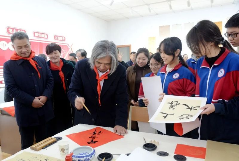 吴为山和师生热情交流互动,慨然落笔,写下“推陈出新,贵在创新”“胸有成竹”“学雷锋”“滴水穿石,积石成山”等书法佳作赠予师生,并寄语一中青年学子坚定不移听党话、跟党走,做有理想、敢担当、能吃苦、肯奋斗的时代新人,传承红色基因,赓续红色血脉,践行强国之志,在雷锋精神的指引下,只争朝夕,砥砺奋斗,努力成长为德智体美劳全面发展的社会主义建设者和接班人,为实现中华民族伟大复兴的中国梦贡献青春力量。