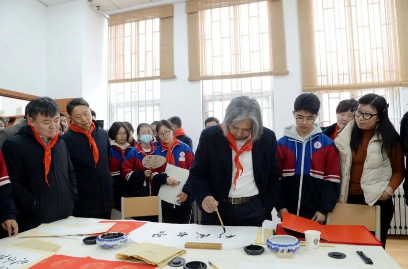 “吴老师好,这是我写的书法,这是我画的画作,这是我创作的剪纸……请您指导。”同学们纷纷围拢上前,争相展示自己的艺术作品,恳请指导。