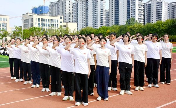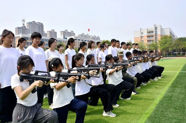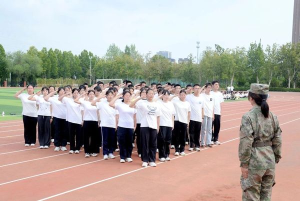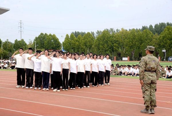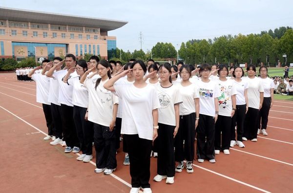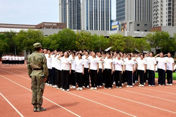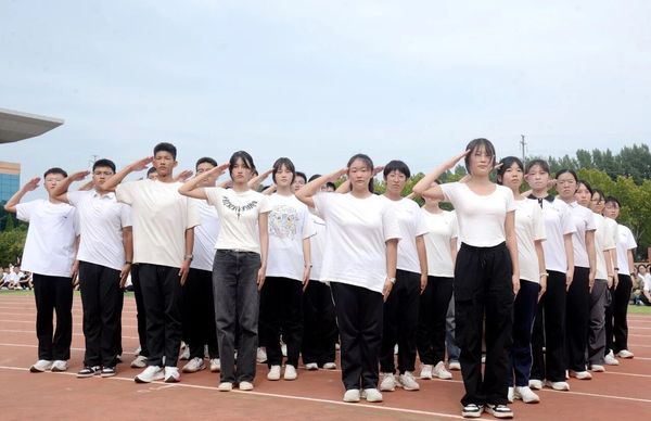 “稍息!立正!敬礼!”同学们目光坚毅、步伐铿锵,整齐划一的动作、响彻云霄的口号,一举一动都凝聚着汗水与坚持,完美展现了军事训练成果,整个操场处处洋溢着蓬勃的朝气和昂扬的斗志。