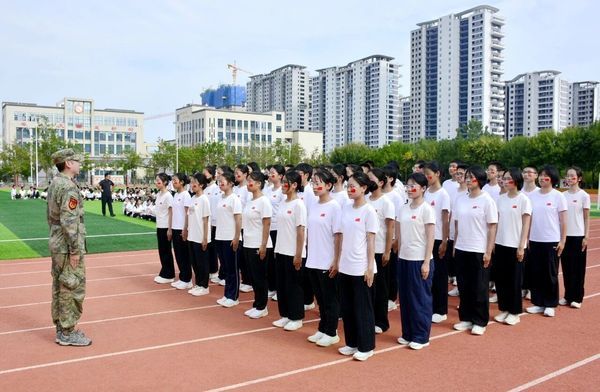 8月26日下午,2025级高一新生圆满完成各项军事训练任务,分校区举行军训会操表演。同学们以挺拔的军姿、整齐的步伐和昂扬的士气,接受承训官兵、学校领导和家长的检阅。