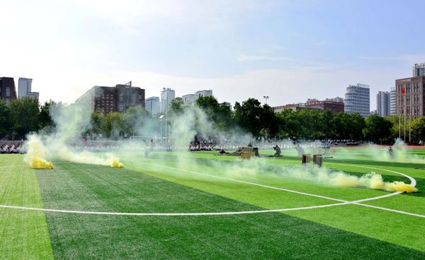 伴随着庄严的升国旗、奏国歌仪式,军训会操正式拉开帷幕。
