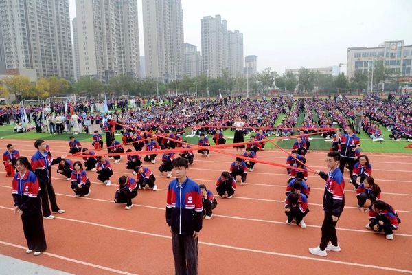 “各就各位——预备——”发令枪响,划破秋日的长空。跑道上,健儿们如离弦之箭,奔向终点;田赛场上,跳高选手腾空跃起,划出优美弧线;铅球运动员奋力一掷,抛出力量与技巧的完美结合。接力赛中,默契的传递不仅是速度的较量,更是心灵的相通;跳绳比赛里,翻飞的绳索编织着青春的节奏。
