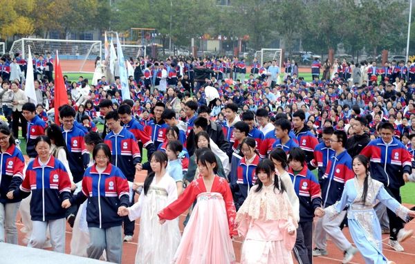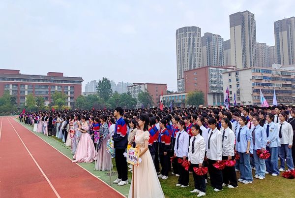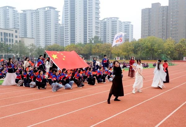 开幕式上,伴随着激昂的乐曲,各班级方队迈着整齐有力的步伐,依次走过观众席和主席台。同学们精神抖擞,意气风发,以精彩纷呈的文体表演展现班级风采。汉服飘逸,舞姿翩跹;红旗招展,步伐铿锵;创意队形,变幻无穷。每个班级都用独特的方式传递着深厚的文化底蕴,将运动场变成了绽放青春魅力的舞台。